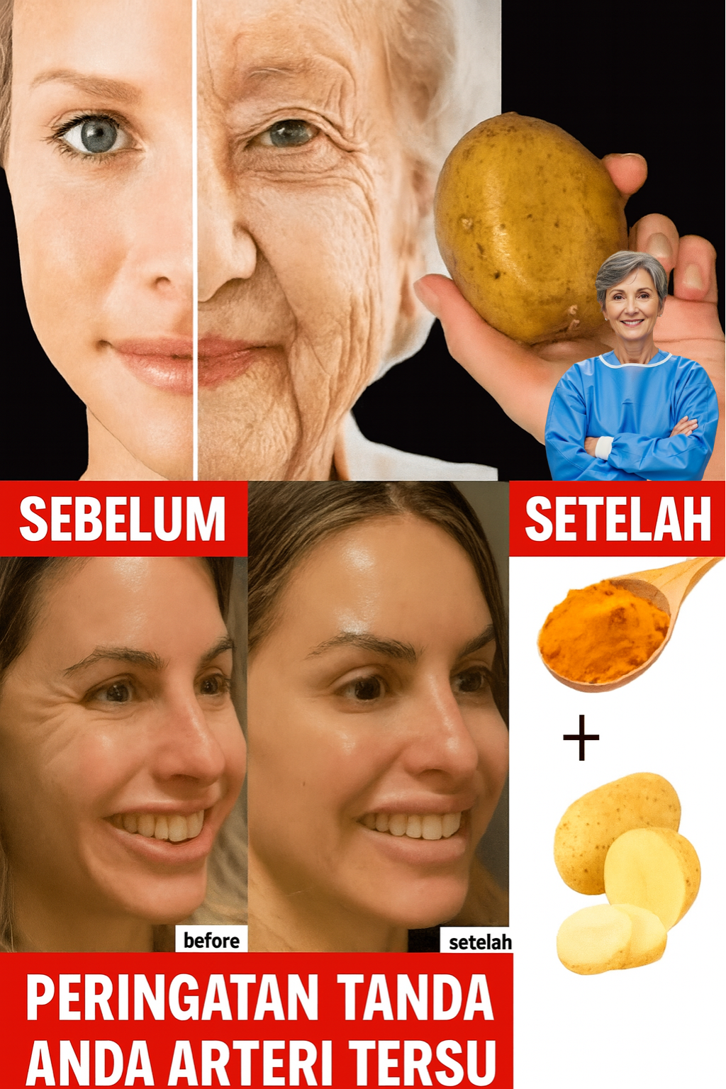 Bayangkan Anda berada di dapur yang hangat, mengupas kentang dengan aroma tanah yang lembut, sementara bubuk kunyit emas menyatu dalam ramuan yang menjanjikan kulit bercahaya. Pada usia 67 tahun, Anda mulai menyadari kulit Anda yang dulu cerah kini tampak kusam—bintik usia, kekeringan, dan garis‑halus perlahan mencuri kilau Anda. Anda sudah coba krim mahal, tapi sering kali menimbulkan sensasi terbakar atau hasilnya mengecewakan. Bagaimana jika dua bahan sederhana ini bisa memicu transformasi sejak pemakaian pertama? Untuk lansia yang mencari cara alami dan lembut untuk membangkitkan kembali kulitnya, kentang dan kunyit bisa jadi rahasia yang terlupakan. Siap untuk mengungkap kulit yang lebih halus dan lebih cerah? Mari kita selami resep bercahaya ini.