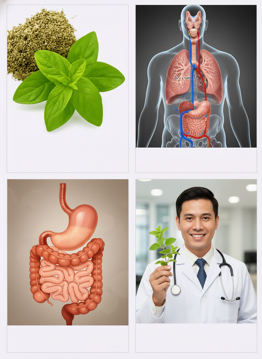 Oregano telah terbukti melawan Helicobacter pylori, Candida, dan pengunjung usus yang tidak diinginkan lainnya tanpa merusak bakteri baik seperti yang sering terjadi dengan antibiotik spektrum luas. -