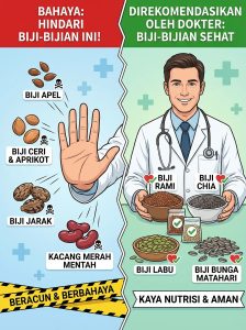 | Apel | Amygdalin → Sianida | Beracun jika dikonsumsi rutin |