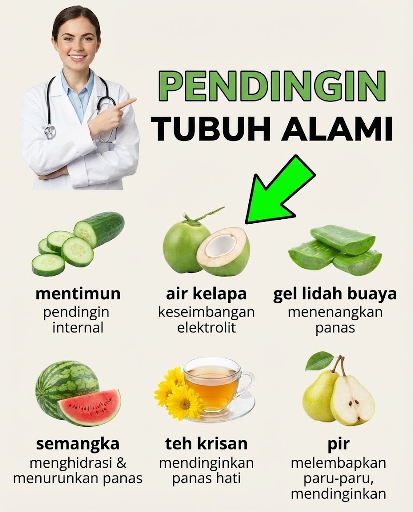 Bayangkan ada tujuh makanan biasa — yang Anda lewati di toko setiap minggu — yang bisa menurunkan panas tubuh secara halus tanpa es batu sekalipun.
