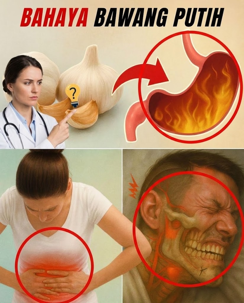 Terlalu banyak bawang putih (lebih dari 3–4 siung per hari) kadang menyebabkan kembung, gas, atau bau badan yang intens. Mulailah dengan porsi kecil — sekitar 1–2 siung — yang umumnya lebih mudah ditoleransi.