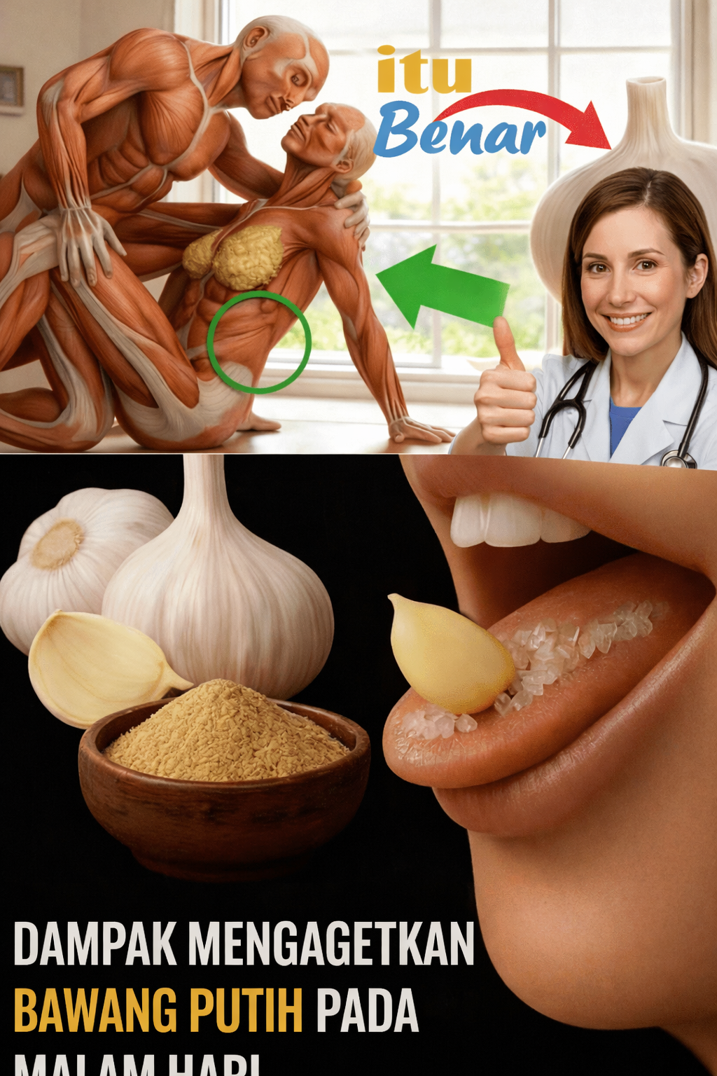 Alternatif lembut: rebus 1 siung geprek dalam susu hangat, saring, minum 30 menit sebelum tidur.