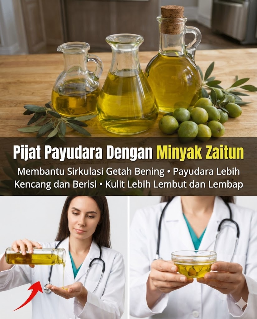 ✨ Payudara terasa berat atau tegang? Coba pijatan lembut dengan minyak zaitun untuk membantu melancarkan aliran limfatik dan mengurangi rasa tidak nyaman secara alami.