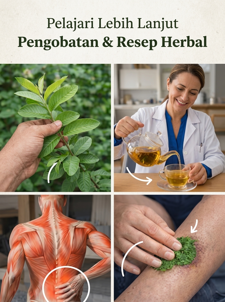 Dalam pengobatan tradisional, daun jambu biji sering digunakan sebagai teh herbal, kompres hangat, atau bahkan minyak pijat. Berikut beberapa cara sederhana menggunakannya: